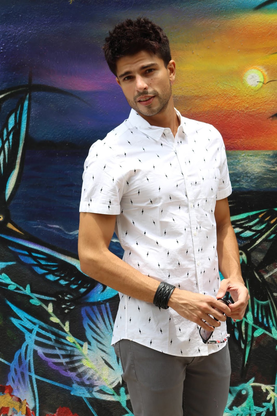DM: Eu confesso que era mais ligado nisso antes. Hoje em dia opto pelo conforto mesmo, mas gosto de roupas que animam meu dia. Exemplo: Estou respondendo essa entrevista na fila da prefeitura, olho para minhas meias com desenhos de burritos e tacos e já melhora meu humor. Acho que meias. Meias não podem faltar.